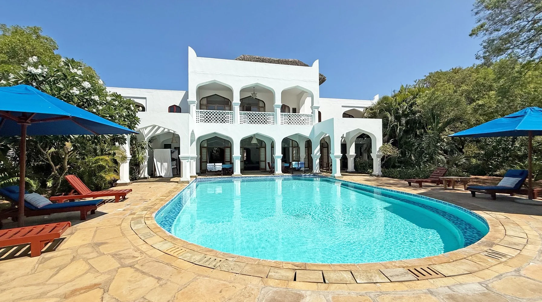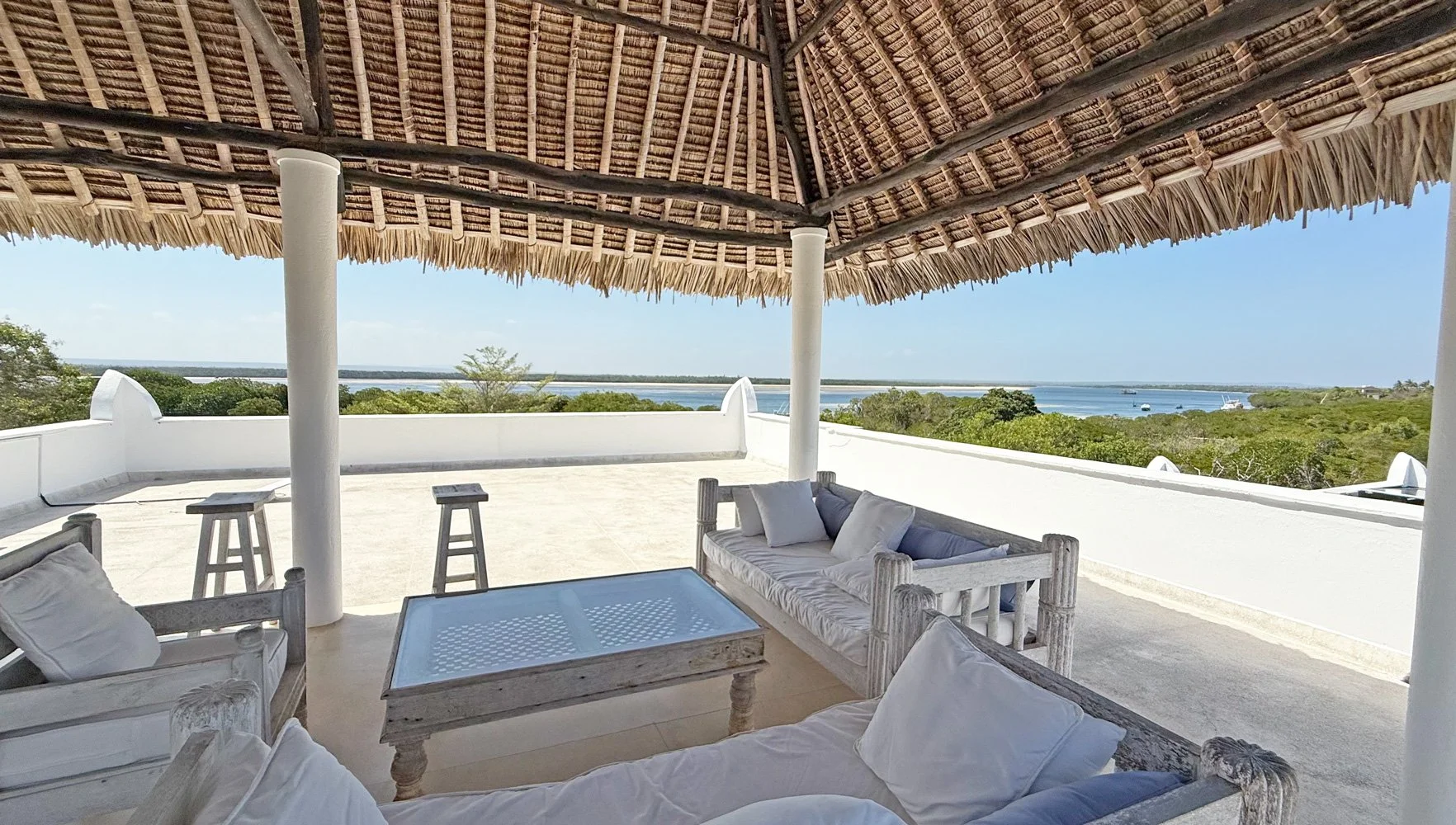 Jahazi House is a fabulous five-bedroom villa with a private swimming pool, set to overlook the lush mangroves and stretch out towards the serene Mida Creek. A charming wooden boardwalk winds through the mangrove, providing easy and picturesque access down to the creek.