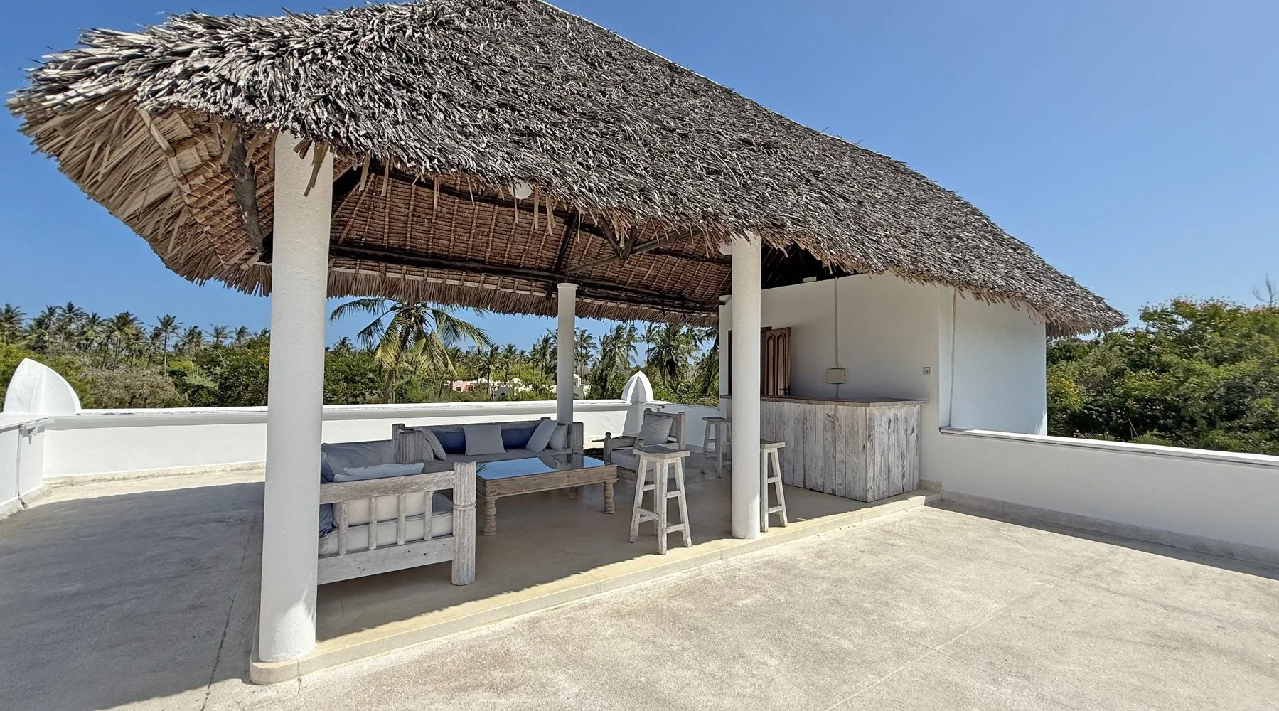 A spectacular feature of this lovely villa is the rooftop terrace, with a comfortable seating area as well as a bar. Itβs the perfect spot for sundowners, where you can relax and watch the evening sun sink over the creek β a stunning daily event that few homes can boast.