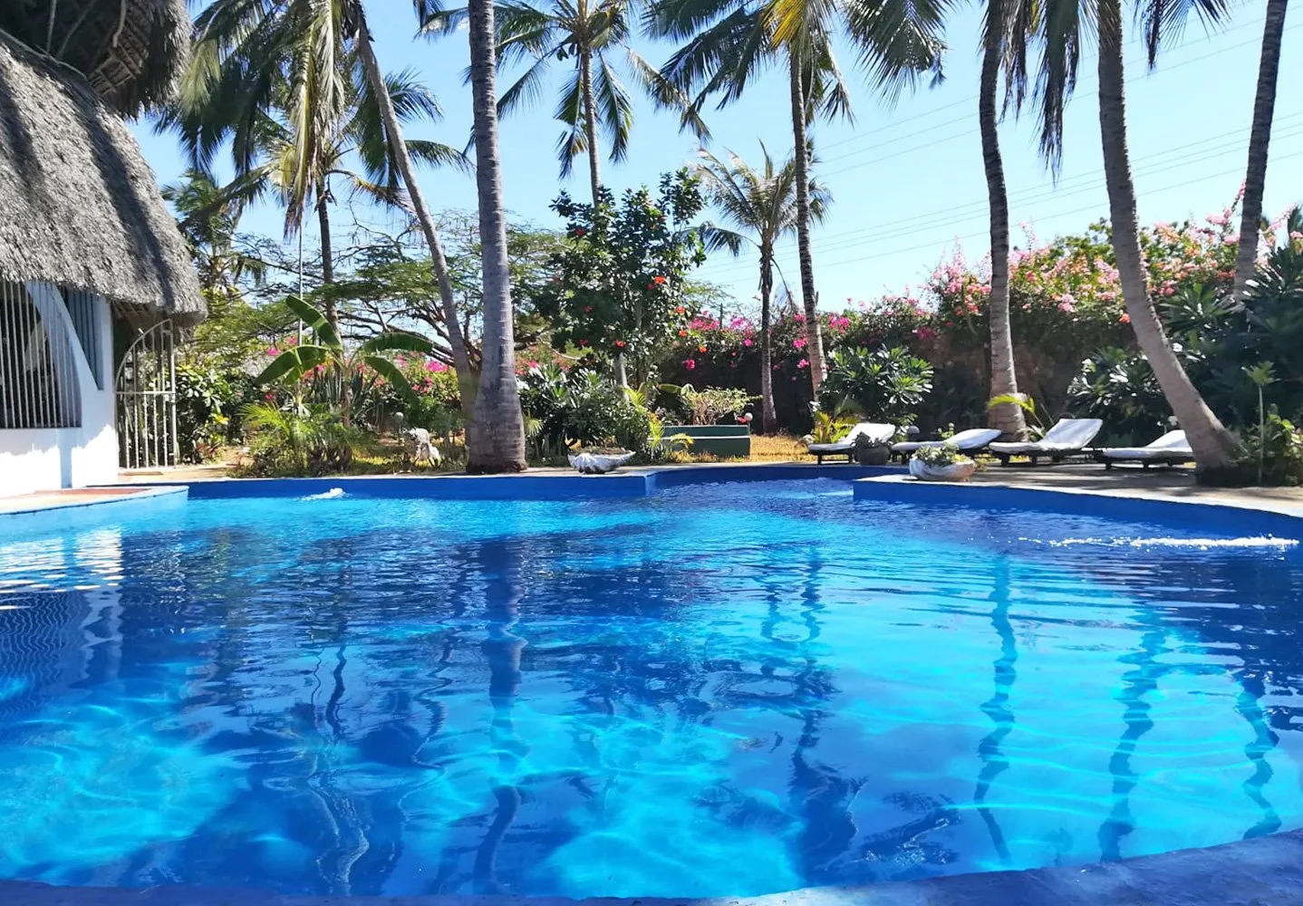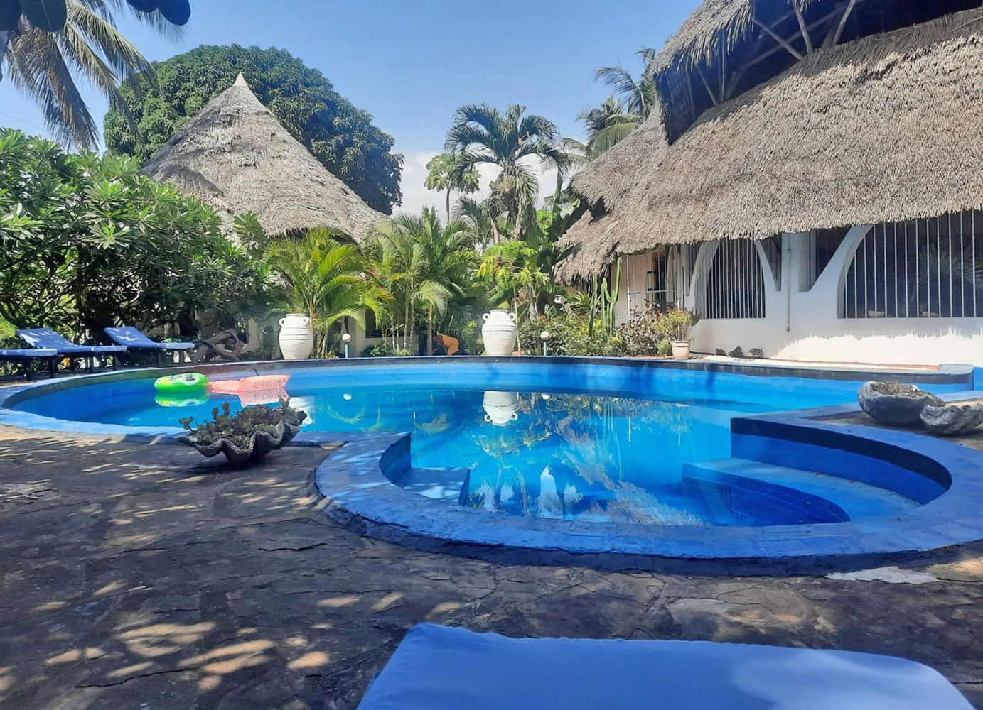Set within 1.3 acres of lush, tropical garden, this charming Makuti‑topped six‑bedroom villa with pool sits in the exclusive Vendita neighbourhood off Cassuarina Road in Malindi. It’s just a pleasant 12‑minute walk to the beach via a public access road, and lies close to a selection of restaurants and hotels while still maintaining a calm, peaceful atmosphere.