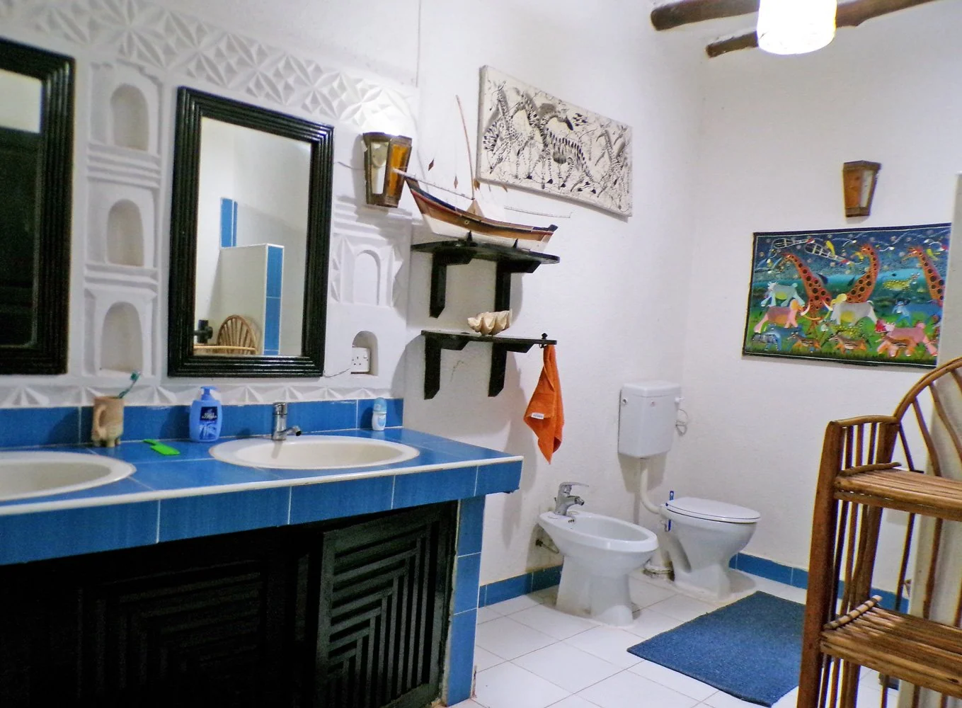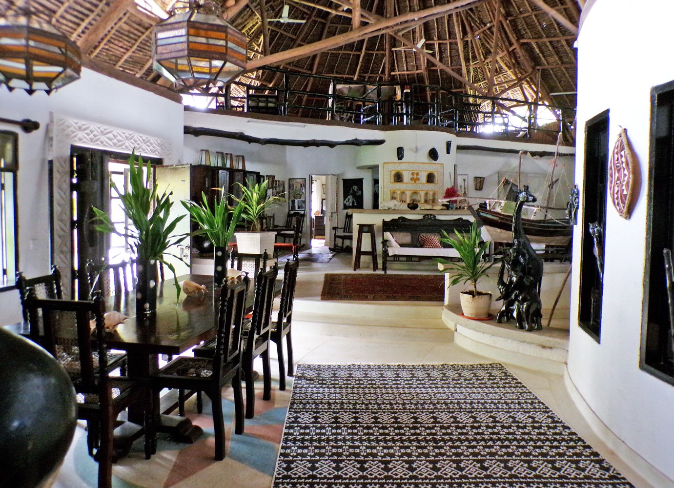 The six bedrooms branch off the main living area, and the property includes eight bathrooms each with traditional Lamu ceilings and neru