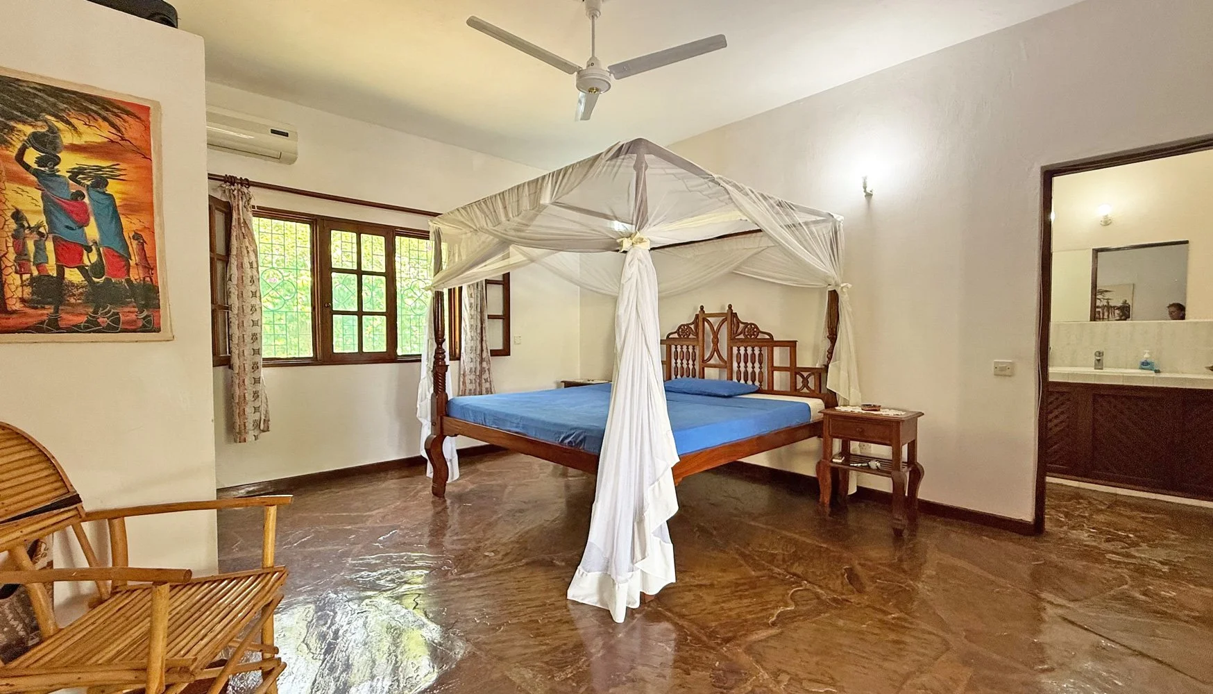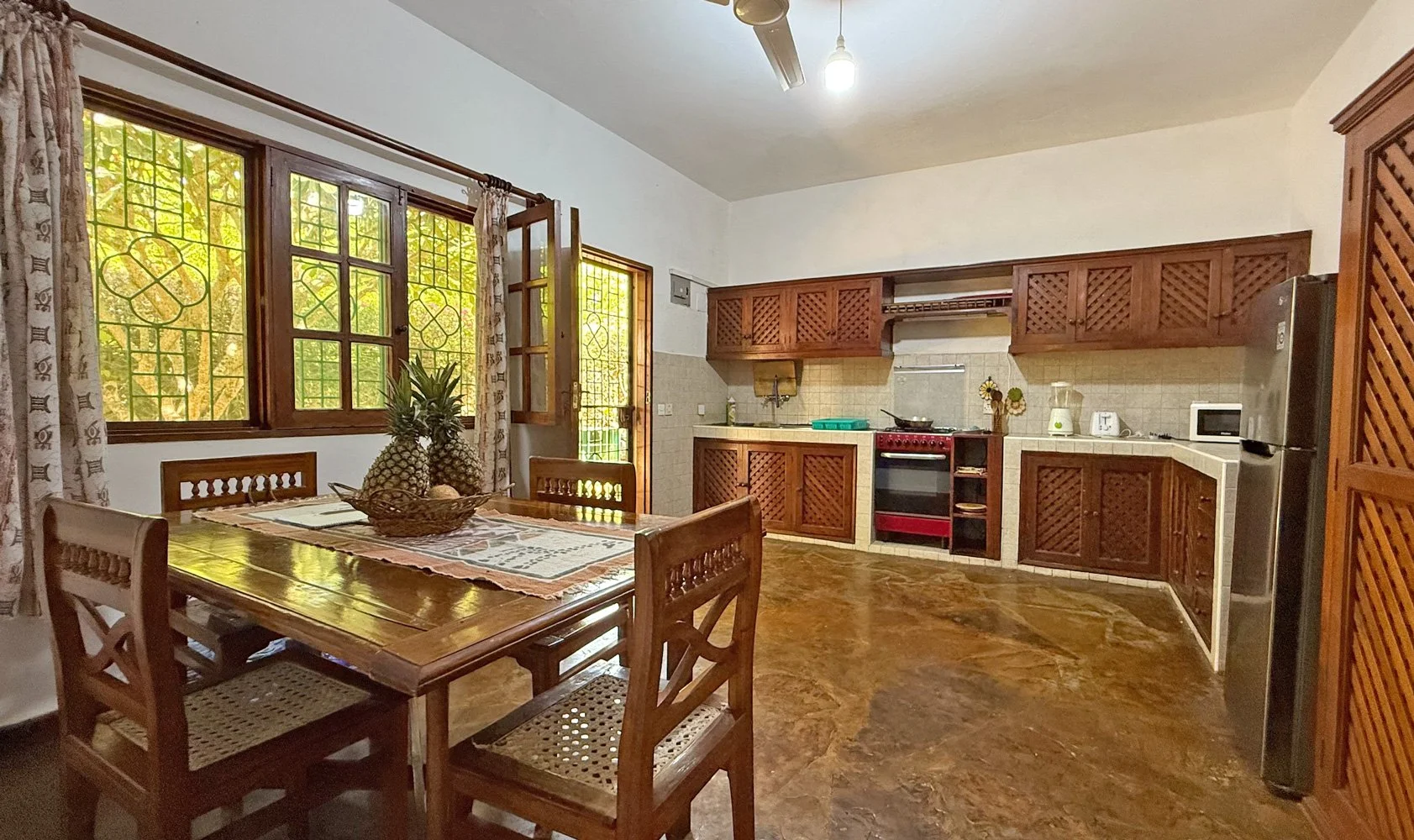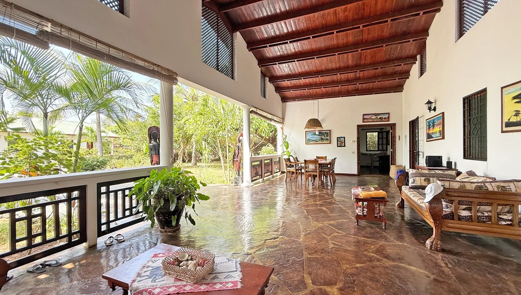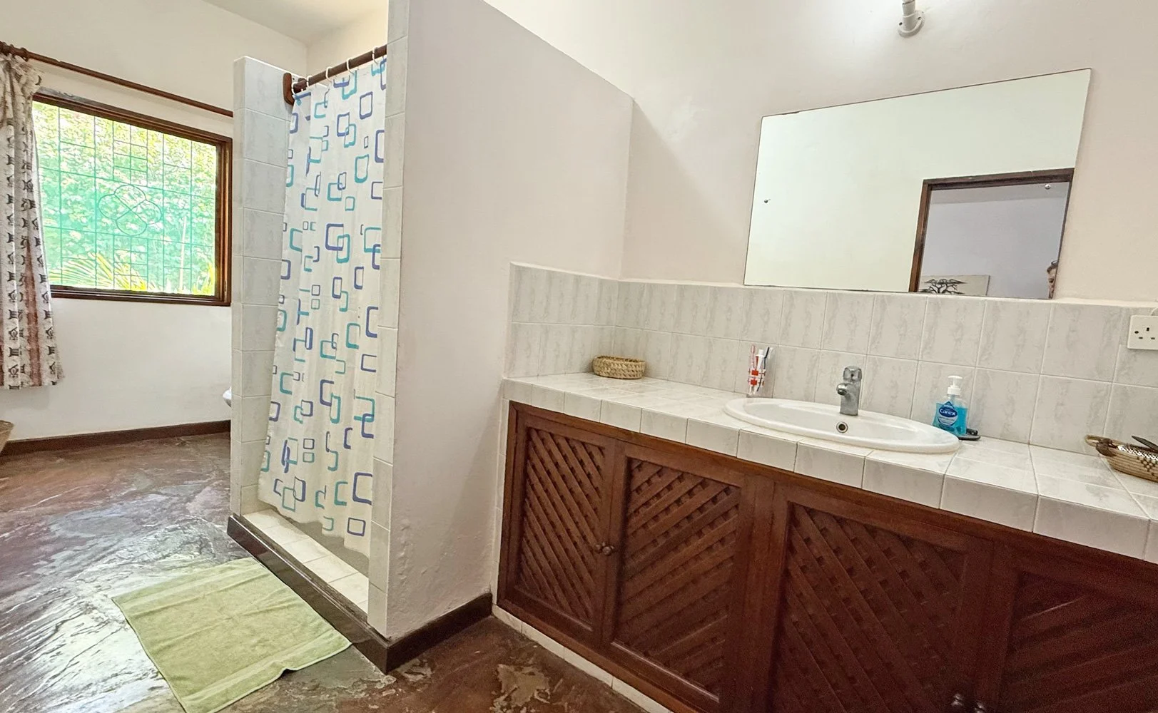 Off the other side of the verandah are the three spacious bedrooms, each comfortably air-conditioned and featuring their own ensuite shower bathroom. Hot water is supplied reliably by electric boilers. The flooring throughout the house is rich Galana stone.